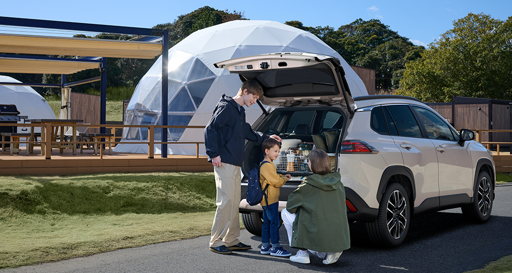 ボディサイズは少し大きめ(全幅1,825mm)ですが、見切りが良く運転しやすいです。荷室容量はクラス最大級で、ベビーカーもゴルフバッグも余裕。